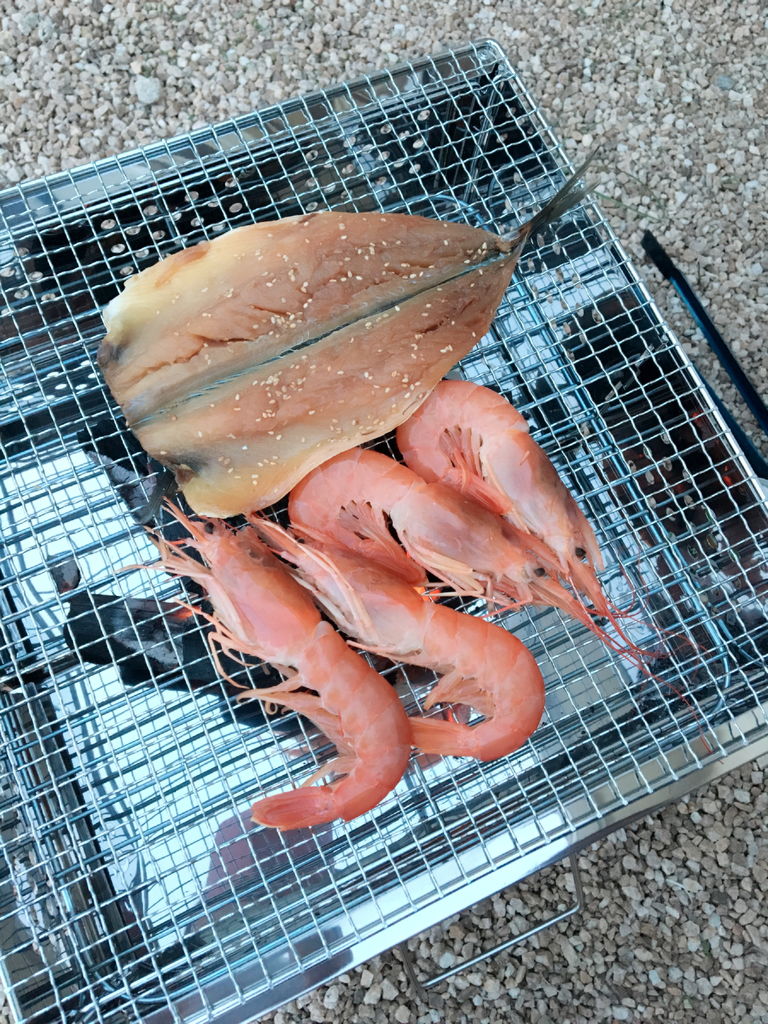 今回は外で焼き物係の旦那が1人で焼いて