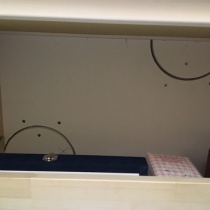 おはようございます😃 キッチン収納棚が完成と思いきや、まだ未完成です キッチン収納棚の中の天井💨 電気の配線の接続で、電気屋さんが大きな穴を あけていました😄 昨日収納棚に三枚収納扉が付きました✨ 棚にクロスを貼っても ...