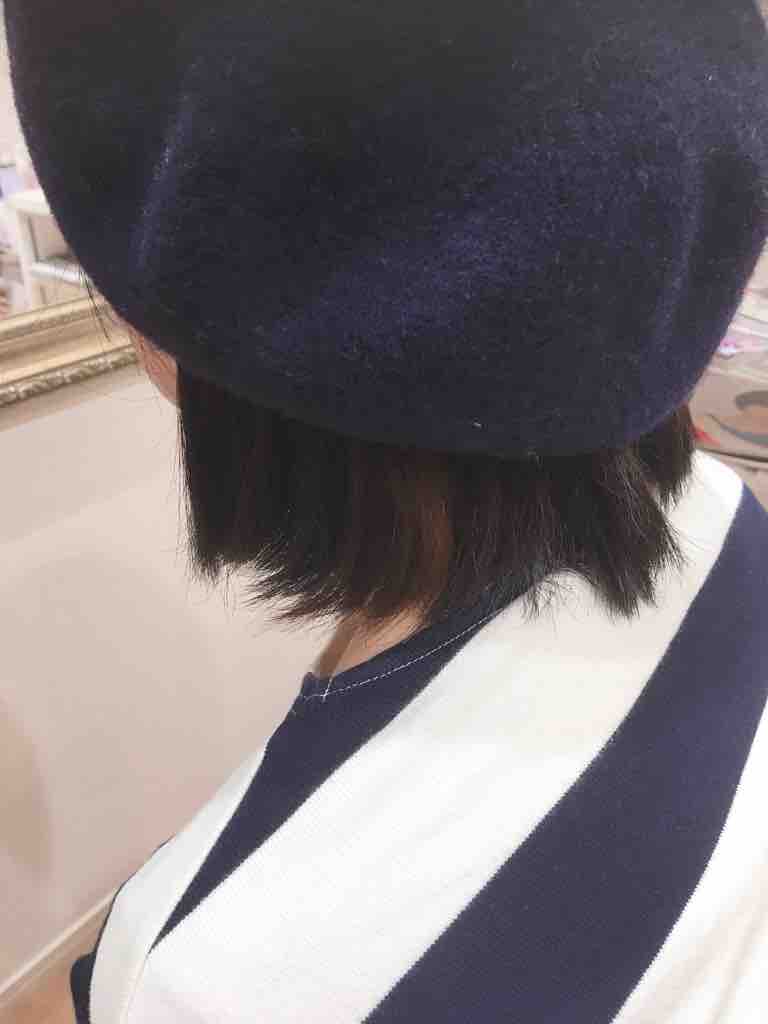 - ちょっと画像が見にくいですが、ベレー帽からちらっと見えるインナーカラー♡